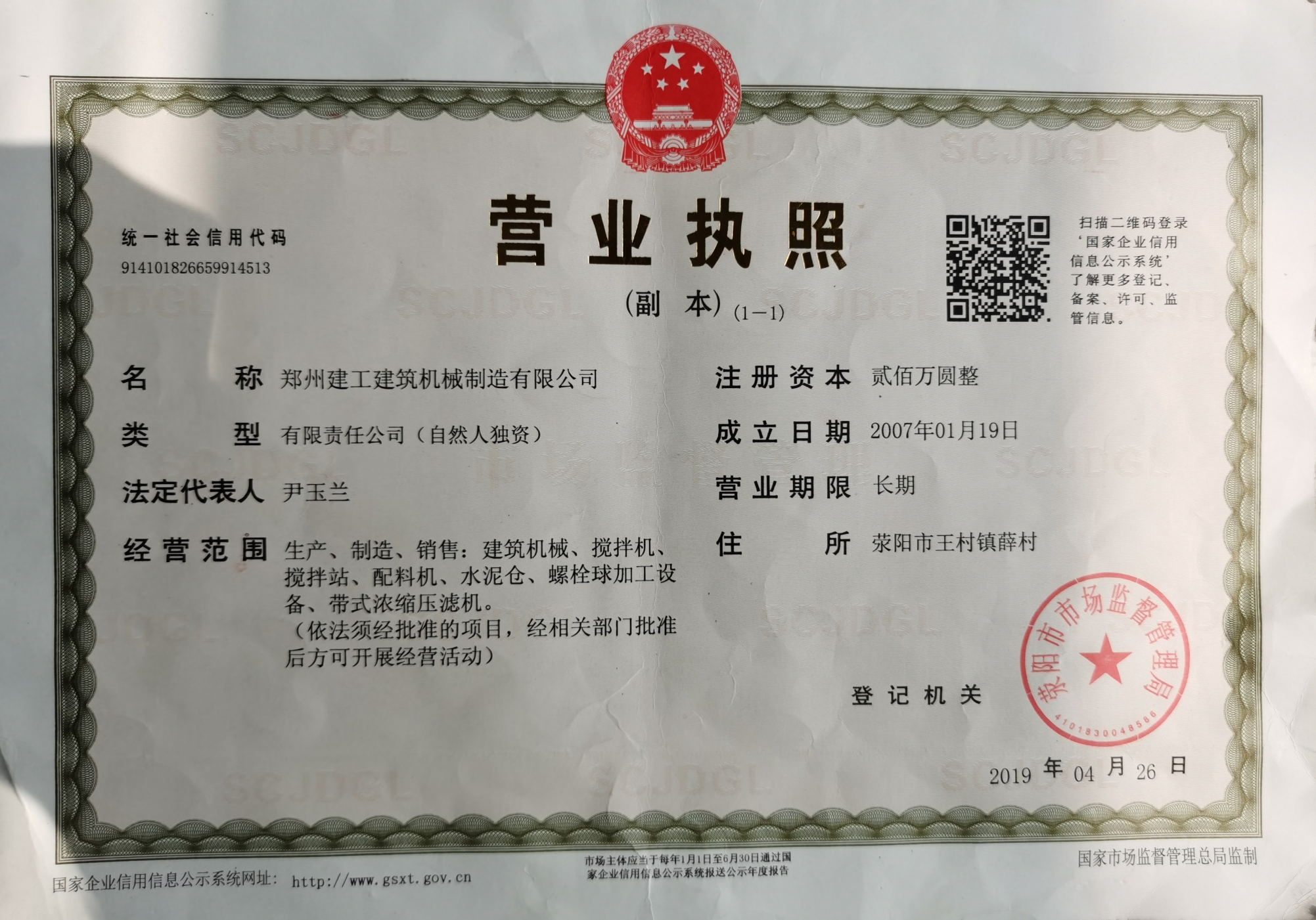 鄭州建工建筑機械制造有限公司以誠待人,以信立企的經營理念 Zhengzhou Construction Machinery Manufacturing Co., Ltd. is sincere to people